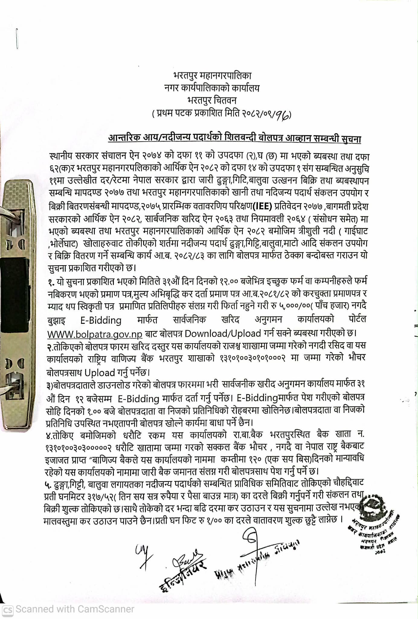 Home » आन्तरिक आय/नदीजन्य पदार्थको शिलबन्दी बोलपत्र आवहान सम्बन्धी सूचना