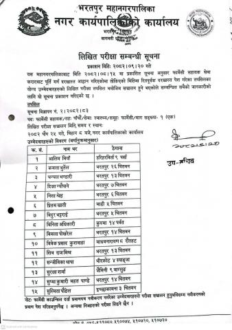 लिखित परीक्षा सम्बन्धी सूचना I