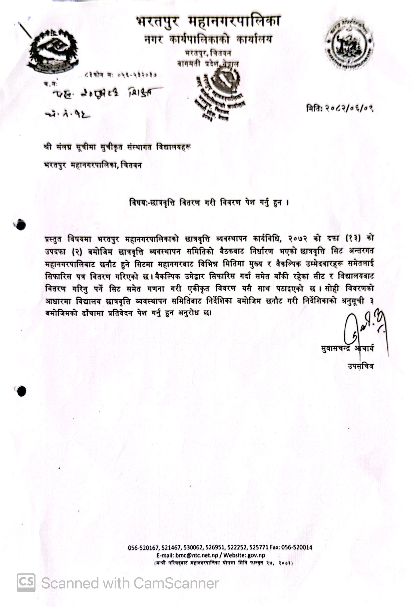 छात्रवृत्ति वितरण गरी विवरण पेश गर्नुहुन
