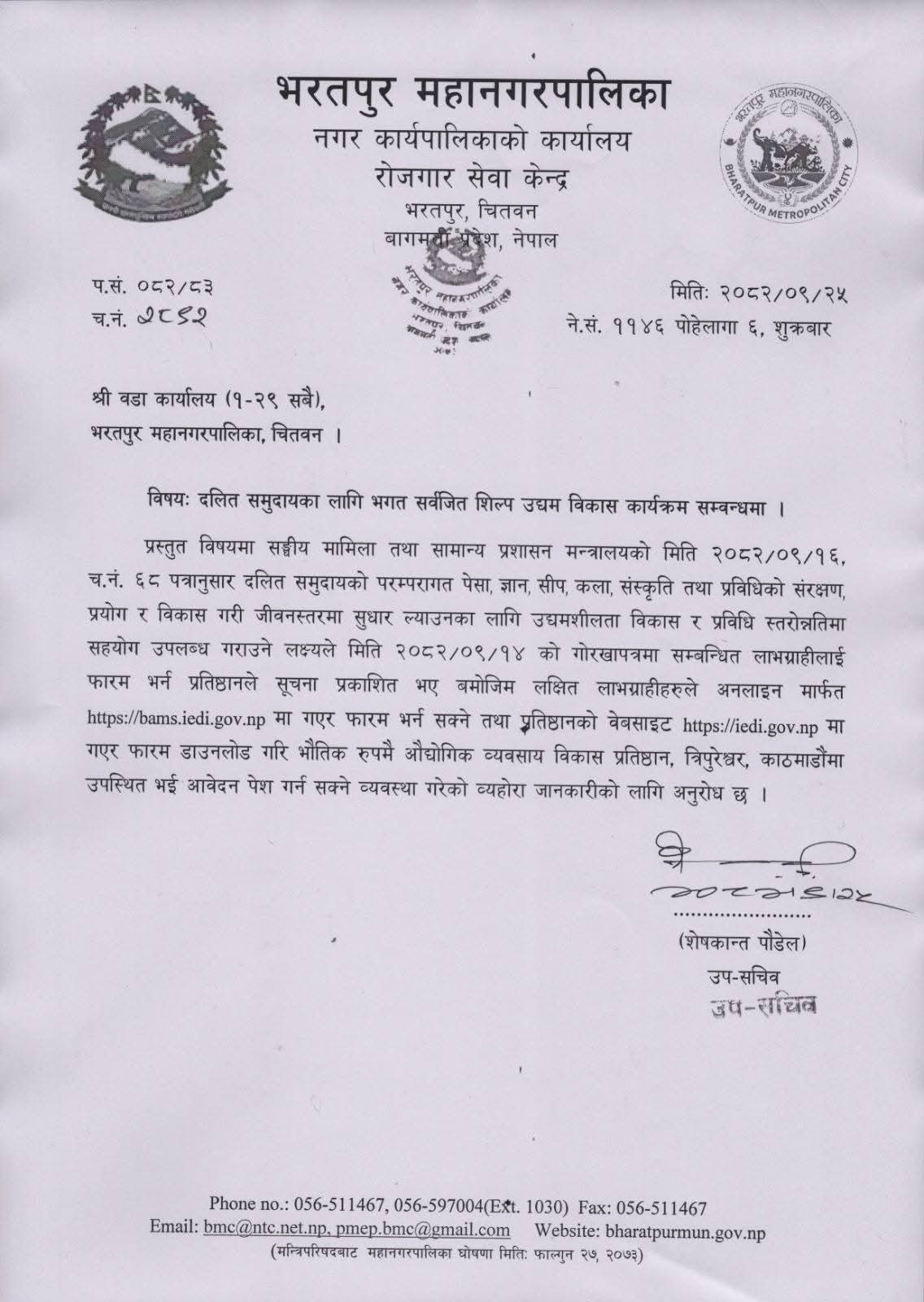 bmc@ntc.net.np / info@bharatpurmun.gov.np