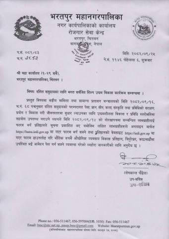 दलित समुदायका लागि भगत सर्वजित शिल्प उद्यम विकास कार्यक्रम सम्बन्धमा ।