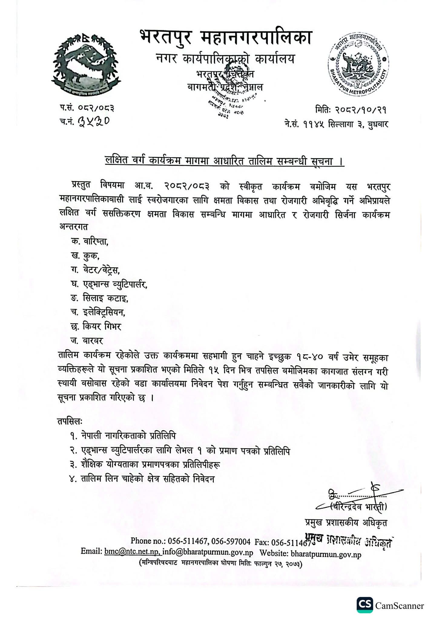 bmc@ntc.net.np / info@bharatpurmun.gov.np