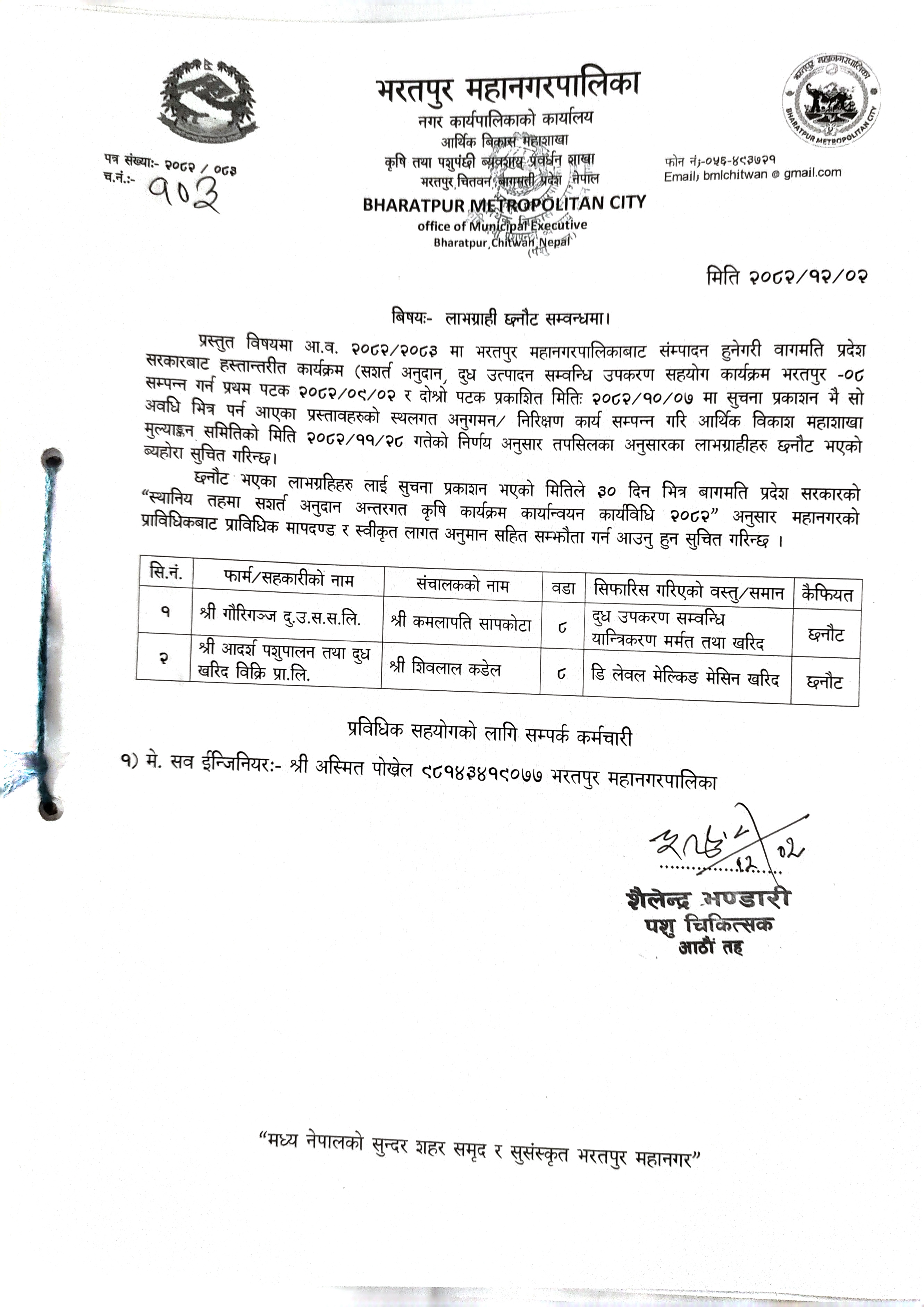 bmc@ntc.net.np / info@bharatpurmun.gov.np