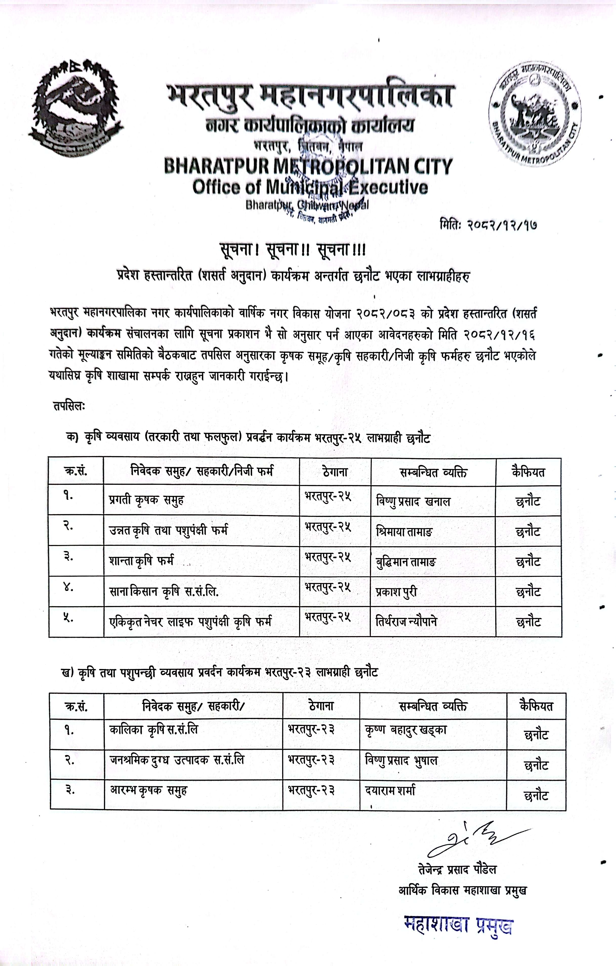 Home » प्रदेश हस्तान्तरित शसर्त अनुदान कार्यक्रम अन्तर्गत छनौट भएका लाभग्राहीहरु