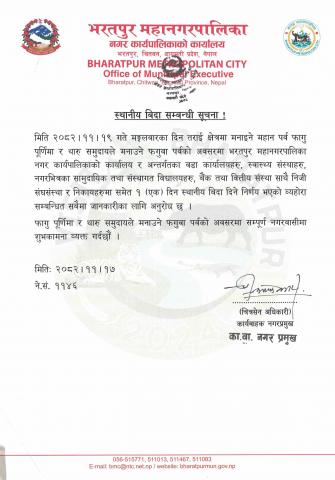 Home » स्थानीय बिदा सम्बन्धी सूचना!