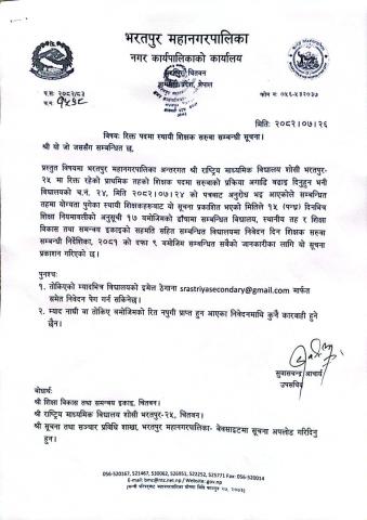 रिक्त पदमा स्थायी शिक्षक सरुवा सम्बन्धी सूचना ।